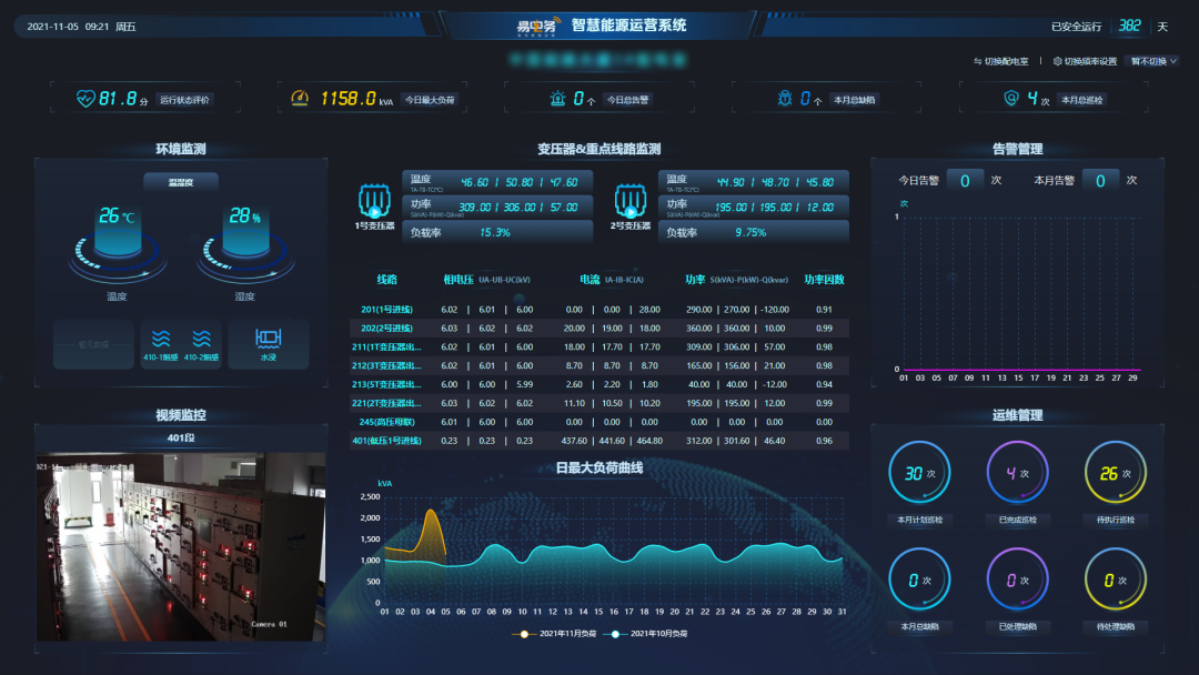 通过分布在配电室内的各类传感器、采集与通信设备,将各种电气信号、运行参数和环境数据传送到易电务配电智能运维云平台上,可对用户配电室进行365*24h远程实时监控,实现配电室运行设备的状态监测、预报警通知、用电数据分析、自动化报告等服务功能,能够有效的提高配电室的运行及管理效率,消除传统人工巡检的周期性盲区,大幅度提高安全运行的保障。