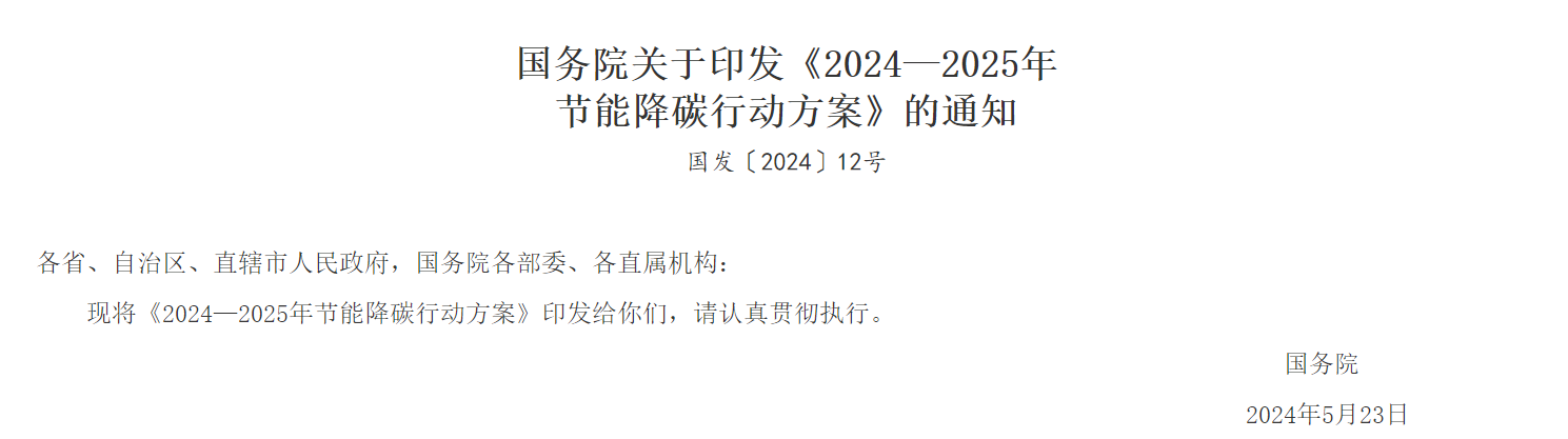 近日,国务院印发了《2024—2025年节能降碳行动方案》通知,紧扣“十四五”节能降碳约束性指标,部署重点行业领域和用能环节节能降碳任务,采取务实管用措施,加大工作推进力度,着力推动高质量发展,为实现碳达峰碳中和目标奠定坚实基础。