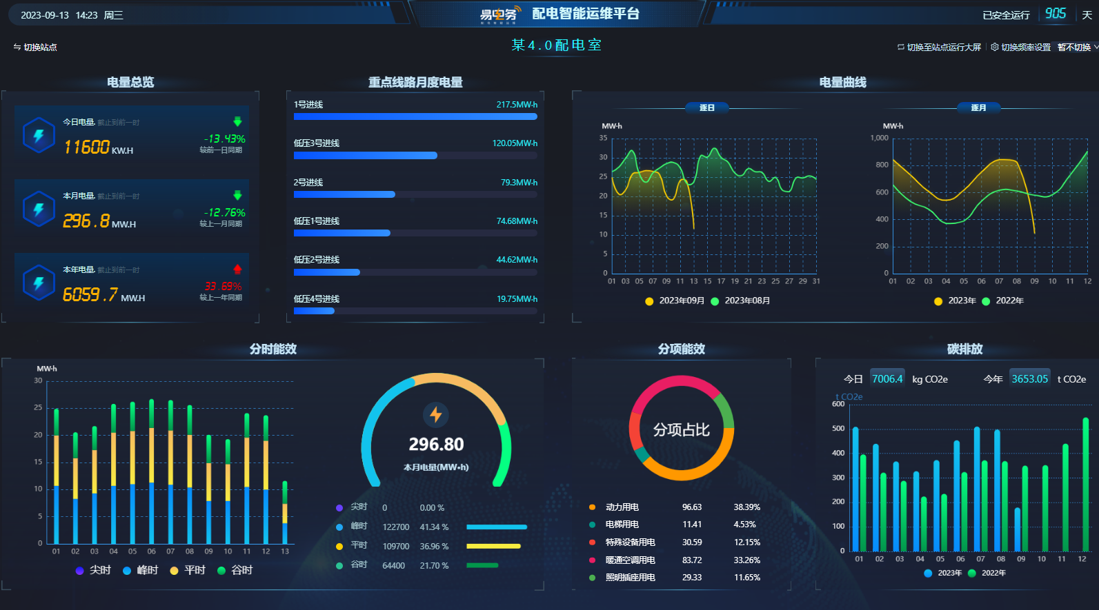 随着节能减排相关政策标准的不断推进,配电智能运维可助企业实现能源数字化管理,通过对能耗、碳排放数据的监控和分析,帮助企业发现能耗异常、设备低效等问题,通过优化能源分配和制定相应的节能措施,可以帮助企业提高能源利用效率,降低能耗成本。
