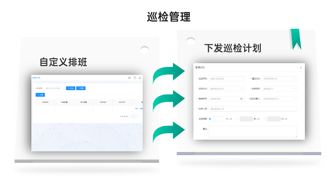 易电务智能巡检管理应用可以快速生成排班计划和巡检计划,并加以区分了固定巡检、临时巡检等计划和日常巡视、重点巡视等方式,让人员值班管理、计划下发、执行更清晰明了,避免了以往的巡检计划落实不到位,人员排班调整混乱和无法按时按班巡检等情况。